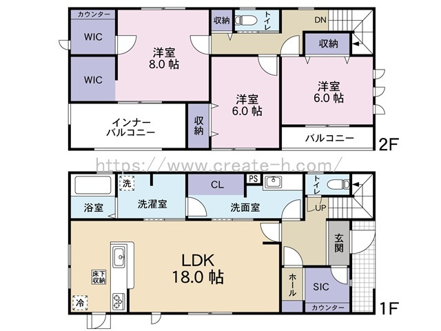 | 間取詳細 | (1階)LDK18、(2階)洋8、(2階)洋6、(2階)洋6 | ||