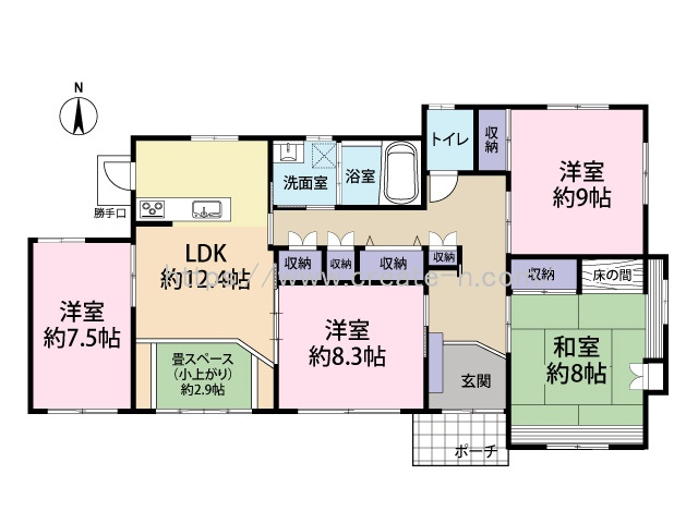 | 間取詳細 | (1階)LDK12.4、(1階)洋9、(1階)洋8.3、(1階)和8.、(1階)洋7.5 | ||