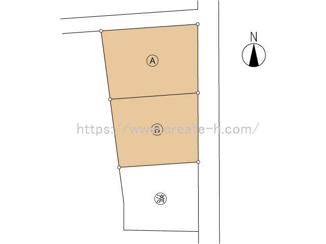 | 特色 | 建築条件なし、公営水道、浄化槽、プロパンガス、電気、角地、セットバックあり、上水道加入金別途要(¥147,000円) 対象地:A区画 ※給排水工事負担金(¥300,000円)別途要 |