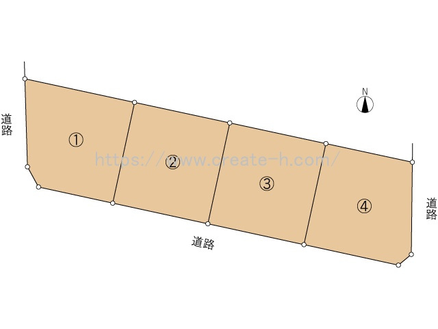 | 特色 | 建築条件なし、公営水道(20o宅地内引込)、公共本下水、プロパンガス、電気、南道路、角地 対象地:@区画 | ||